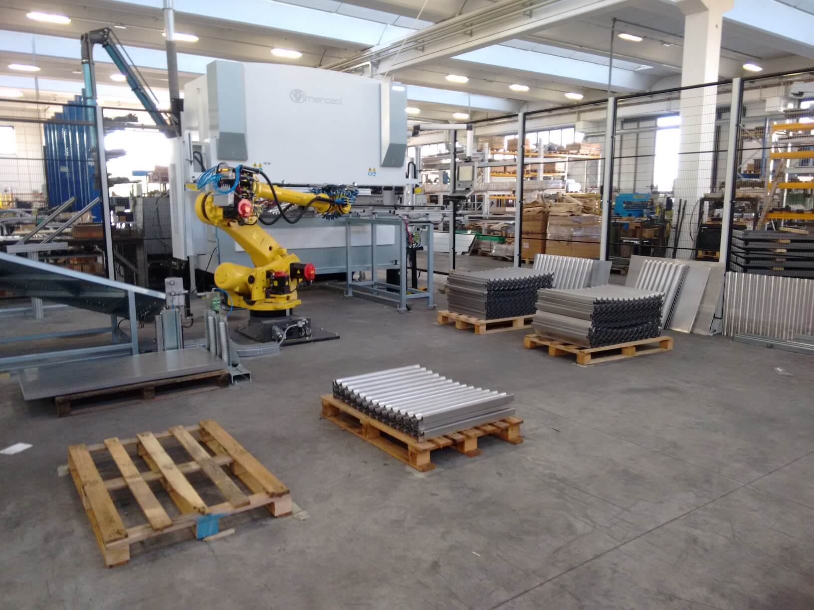 Dans ce type d’installations, le robot peut être fixé devant la presse plieuse, installé sur un chemin de roulement au sol ou sur un portique de manière à permettre également l'utilisation de la presse en mode manuel.